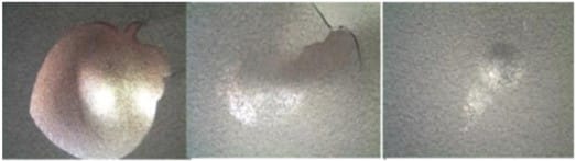 The hollow glass spheres form at the base of a crack and stop it from becoming larger. (The picture on the right shows an enlargement of the crack seen on the left.)