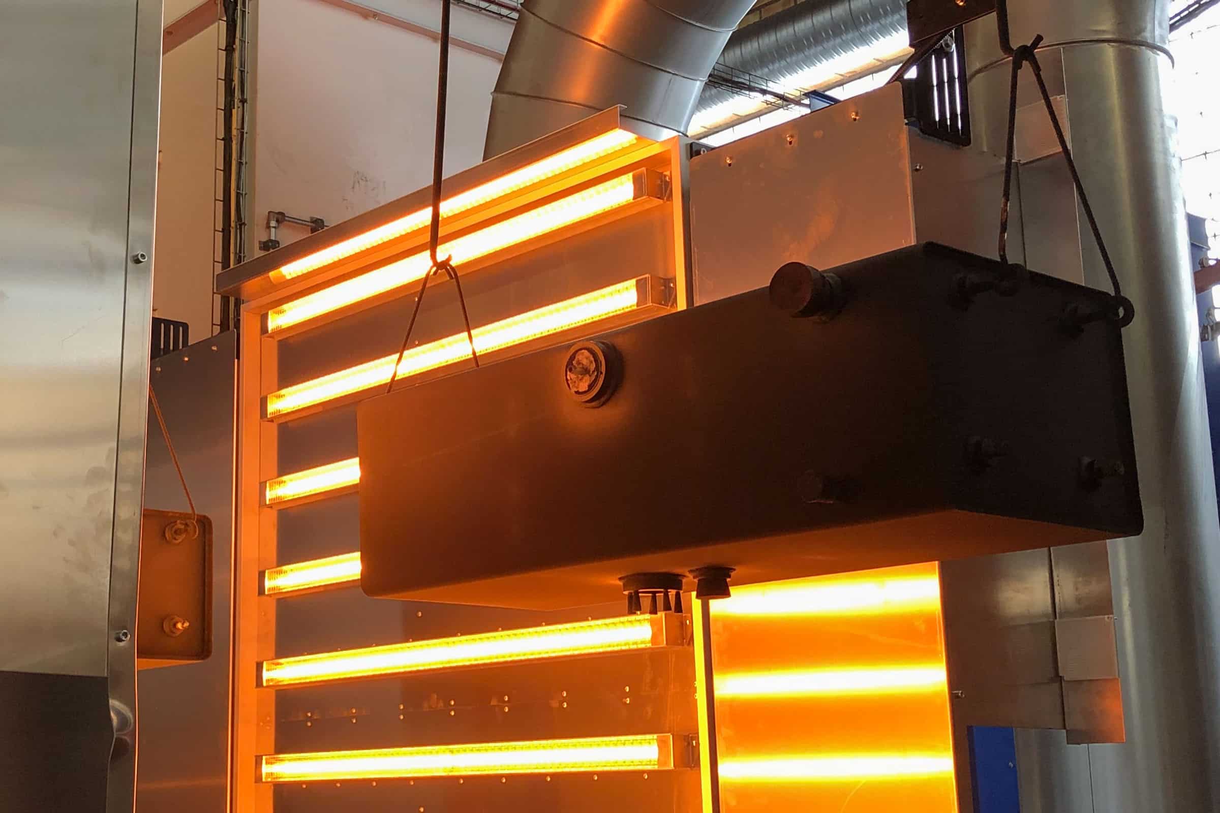 The IRT booster operates using a different process: here, electrically-operated quartz glass lamps act directly on the component. Separate gold-coated reflectors ensure that 98% of the emitted energy is actually utilised.