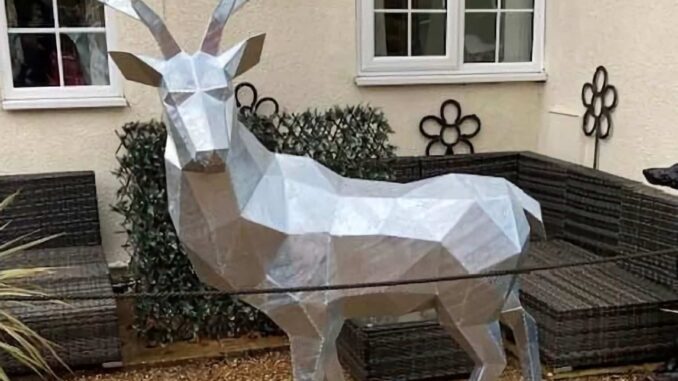 Standing at two metres tall (from hoof to antlers), the stag sculpture was first designed digitally before being cut out of 2mm hot rolled mild steel sheets using Jackson’s homemade CNC plasma cutter. All parts were then cleaned through a wire wheel, bent on a homemade press brake, and finally tacked together and dressed down in preparation for galvanising.